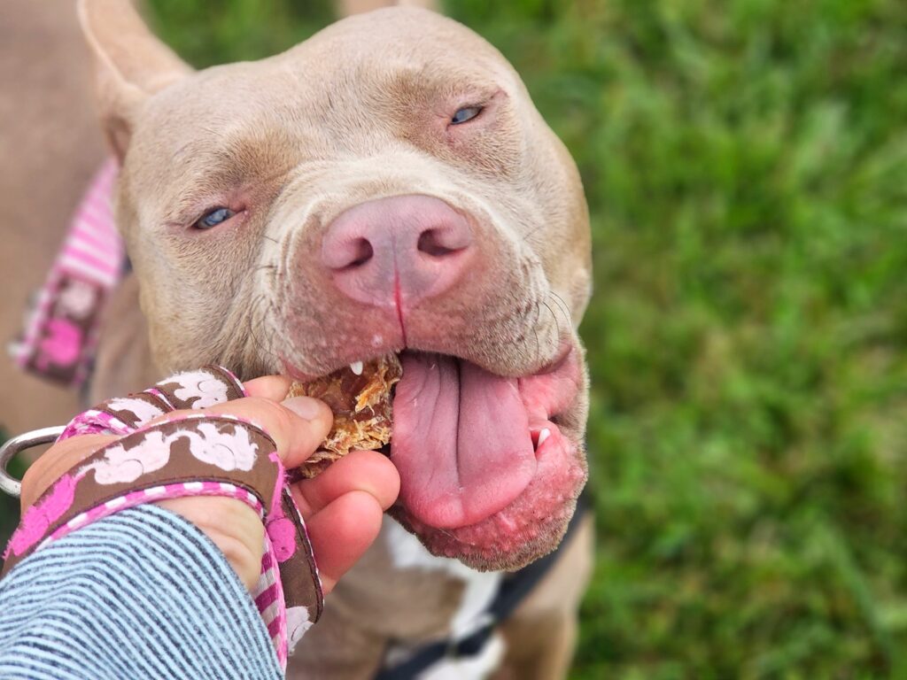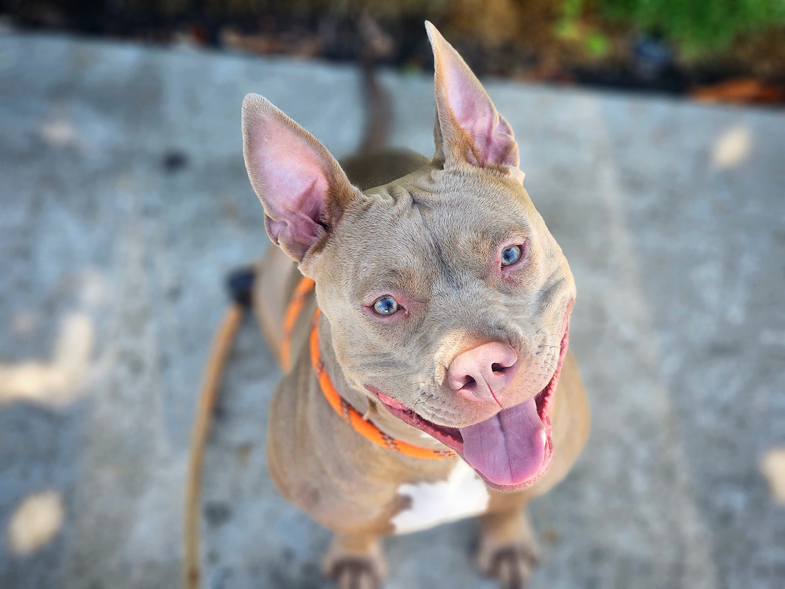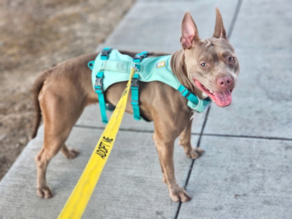She would do best in a home with older kids who understand that she needs a little space to warm up. And unfortunately, she’s not a match for homes with cats—she just can’t help that prey drive.