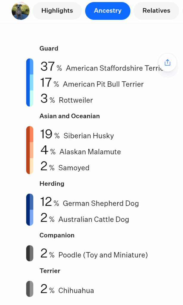 | Breed | Husky/American staffordshire terrier |