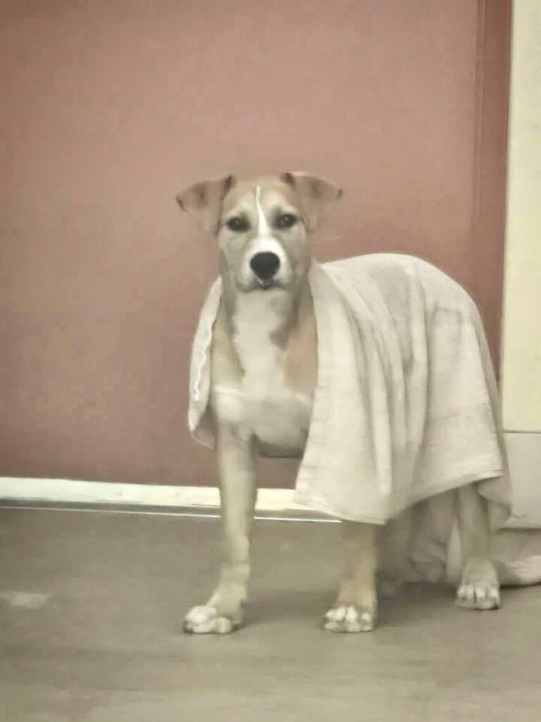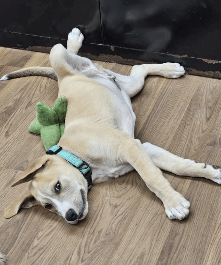 Rambo has been in a foster home since he was just 14–15 weeks old, and now at 6 months he’s blossoming into an affectionate, smart, and social pup. His DNA test revealed he’s a mix of American Staffordshire, Husky, and German Shepherd — which means he’ll grow into a big, strong, and loyal companion.